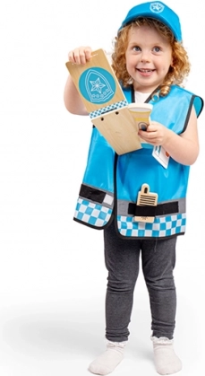 Le déguisement de policier pour enfant BIGJIGS TOYS stimule l’imagination et le jeu de rôle. Le gilet bleu avec éléments réfléchissants, fermetures velcro et détails d’équipement de police, complété par une casquette en coton réglable et des accessoires en bois, crée une expérience réaliste du métier de policier.