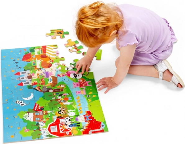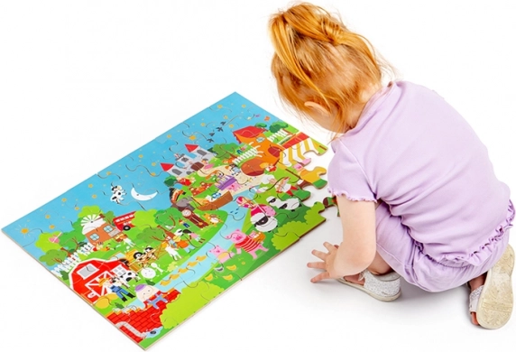 Ce puzzle de sol coloré de 48 pièces invite les enfants dans un monde d’imagination. Chaque illustration inspire à raconter ses propres contes, développant naturellement les compétences linguistiques et l’interaction sociale entre enfants et parents. Les grandes pièces solides se saisissent facilement et s’emboîtent parfaitement.