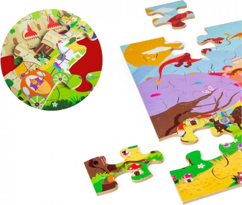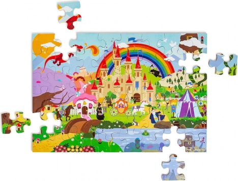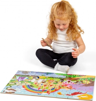 Puzzle de sol en bois Bigjigs Toys Monde fantastique, 48 pièces. Développe la concentration, la motricité et l’imagination. Matériaux de qualité, sûr dès 2 ans.