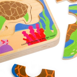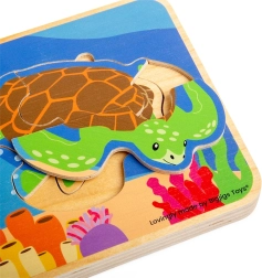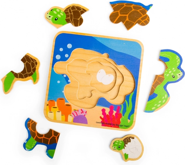 Découvrez comment un œuf devient une tortue adulte – un puzzle en bois ludique et éducatif pour les plus petits. Le puzzle avec 4 étapes du cycle de vie de la tortue développe la motricité fine, la logique et la concentration. Convient à partir de 1,5 an, idéal à la maison comme en voyage.