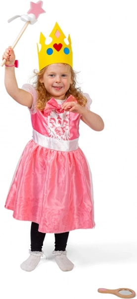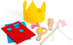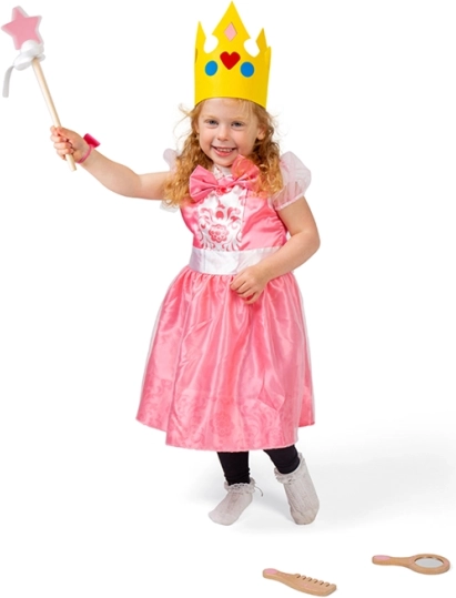 Il comprend un ensemble d’accessoires – couronne, miroir, peigne, gants et baguette magique – qui élargissent les possibilités de jeu et favorisent l’expression de soi. La sécurité est garantie par des tests conformes aux dernières normes EN71 et REACH.