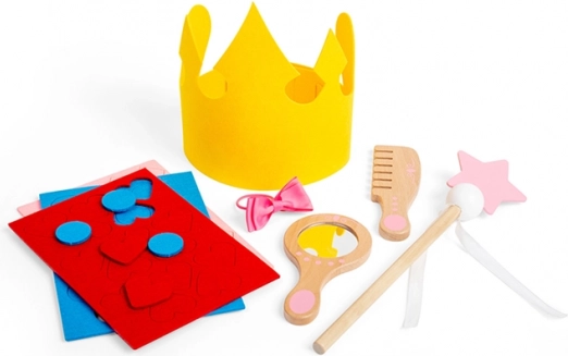 La couronne, le miroir, le peigne, les gants et la baguette magique enrichissent le jeu de nouveaux scénarios et stimulent l’imagination.