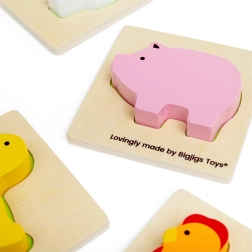 Découvrez un jeu éducatif amusant pour les tout-petits – un set en bois Bigjigs Toys avec des pièces sur le thème de la ferme dans une pochette pratique. Les enfants cherchent les bonnes formes au toucher et développent ainsi la motricité fine, la perception tactile, la pensée logique et la reconnaissance des animaux. Fabriqué en bois de qualité, adapté aux petites mains et idéal pour les voyages.