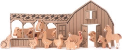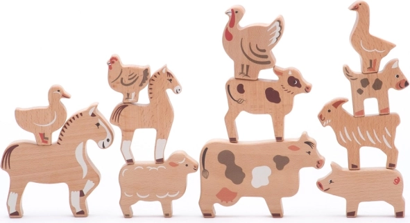 Ce set de qualité comprend des animaux de ferme populaires : cheval, poulain, chèvre, chien, porcelet, veau, vache, dinde, oie, canard, poule, mouton, lapin et chat. Grâce à la finition soignée en bois de hêtre, les figurines sont agréables au toucher, stables et idéales pour un jeu quotidien.