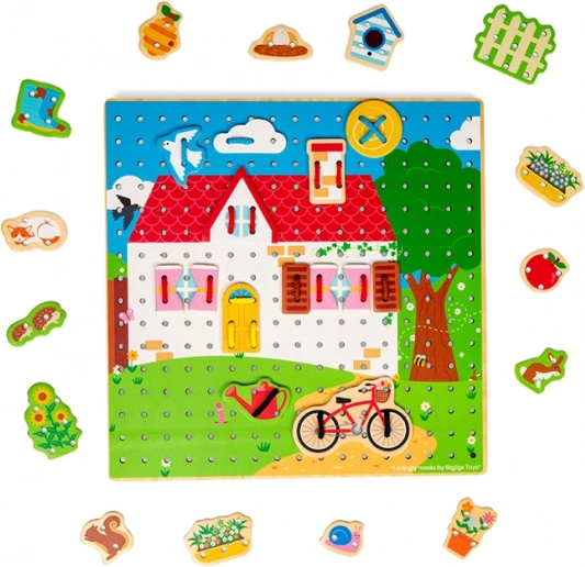 La planche à lacer Maison BIGJIGS TOYS est un jouet d’activité idéal pour les enfants dès 3 ans. Grâce à la planche en bois perforée et aux lacets multicolores, les enfants composent de nouvelles scènes à partir des différentes pièces – des petites fenêtres et des fleurs jusqu’à la roue ou aux nuages. Ils entraînent ainsi naturellement la motricité fine, la coordination œil–main et la concentration.