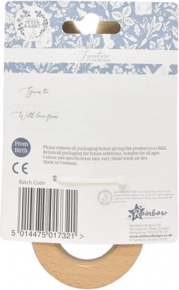 Le léger bruit de hochet éveille la curiosité et la concentration, tandis que l’anneau en bois lisse aide à masser les gencives et à apaiser les dents impatientes. Son design intemporel, inspiré des contes classiques de BEATRIX POTTER, s’intègre joliment à tout trousseau de naissance.
