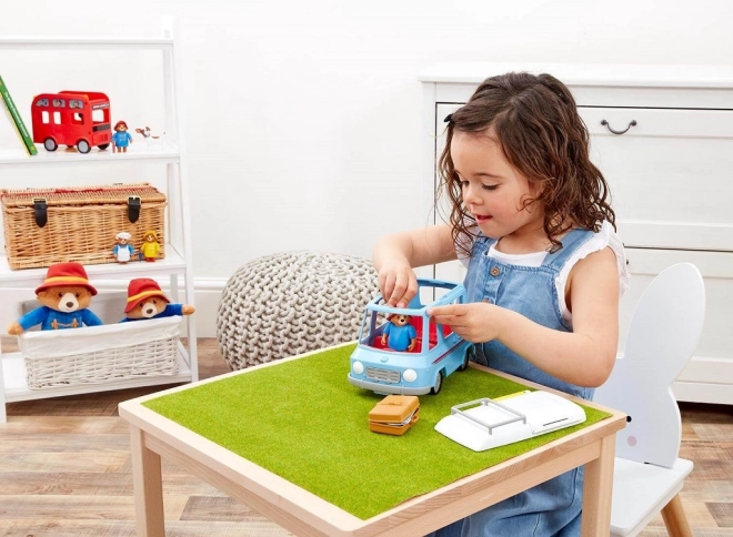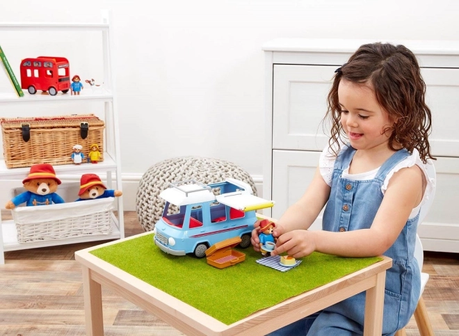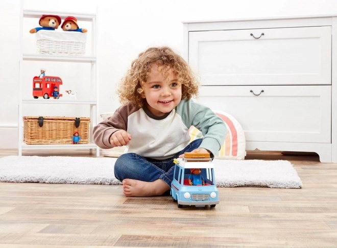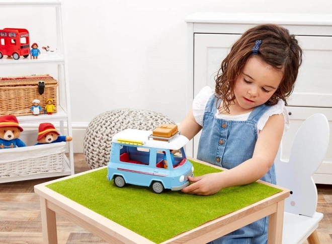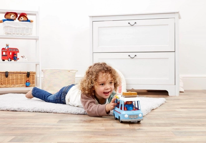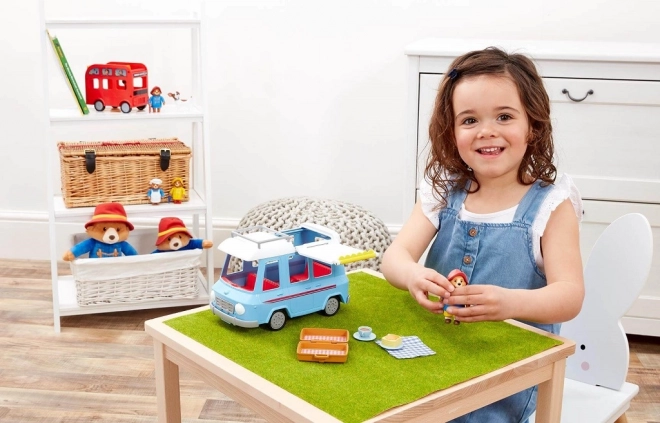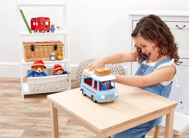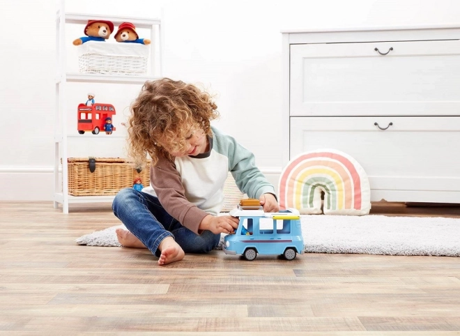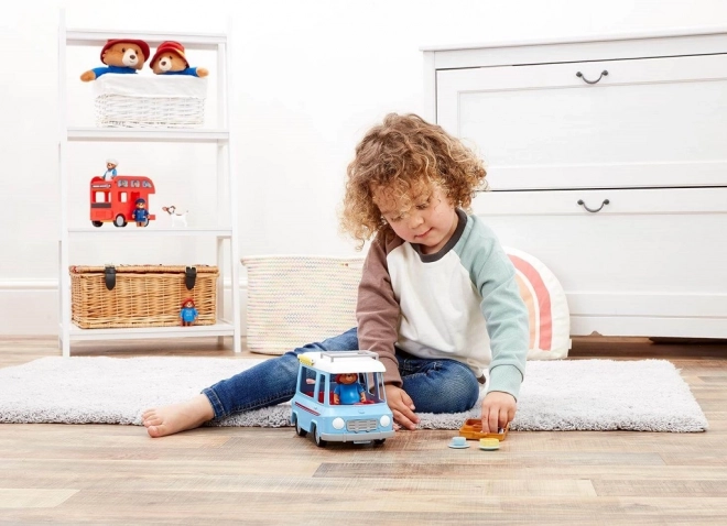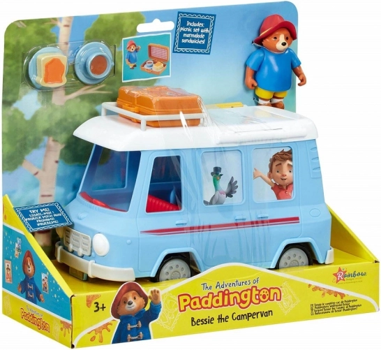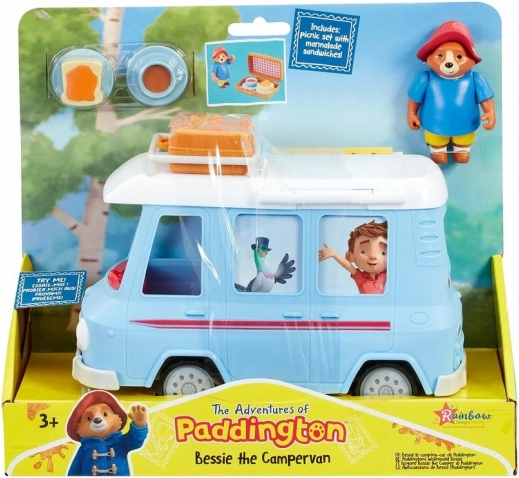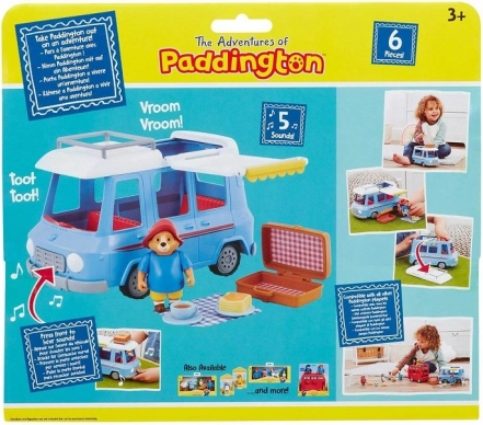 Nous vous présentons la caravane Bessie, remplie de surprises et de divertissements. Retirez le toit pour découvrir tout ce qui se passe à l'intérieur. Lorsque l'heure de la collation arrive, vous pouvez déployer la couverture et ouvrir la mallette pour un sandwich à la marmelade. Les effets sonores, y compris la voix de Paddington, ajoutent une touche d'authenticité à chaque aventure.