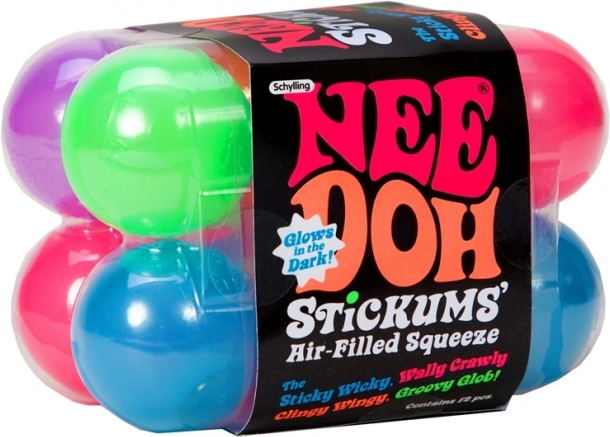 Les NeeDoh Stickums associent relaxation et amusement dans un format pratique. Leurs balles ont une surface agréablement souple et collante ; vous pouvez non seulement les presser, mais aussi les coller et les lancer sur des surfaces lisses – murs, fenêtres ou plafonds – et regarder comment elles se détachent lentement et retombent.