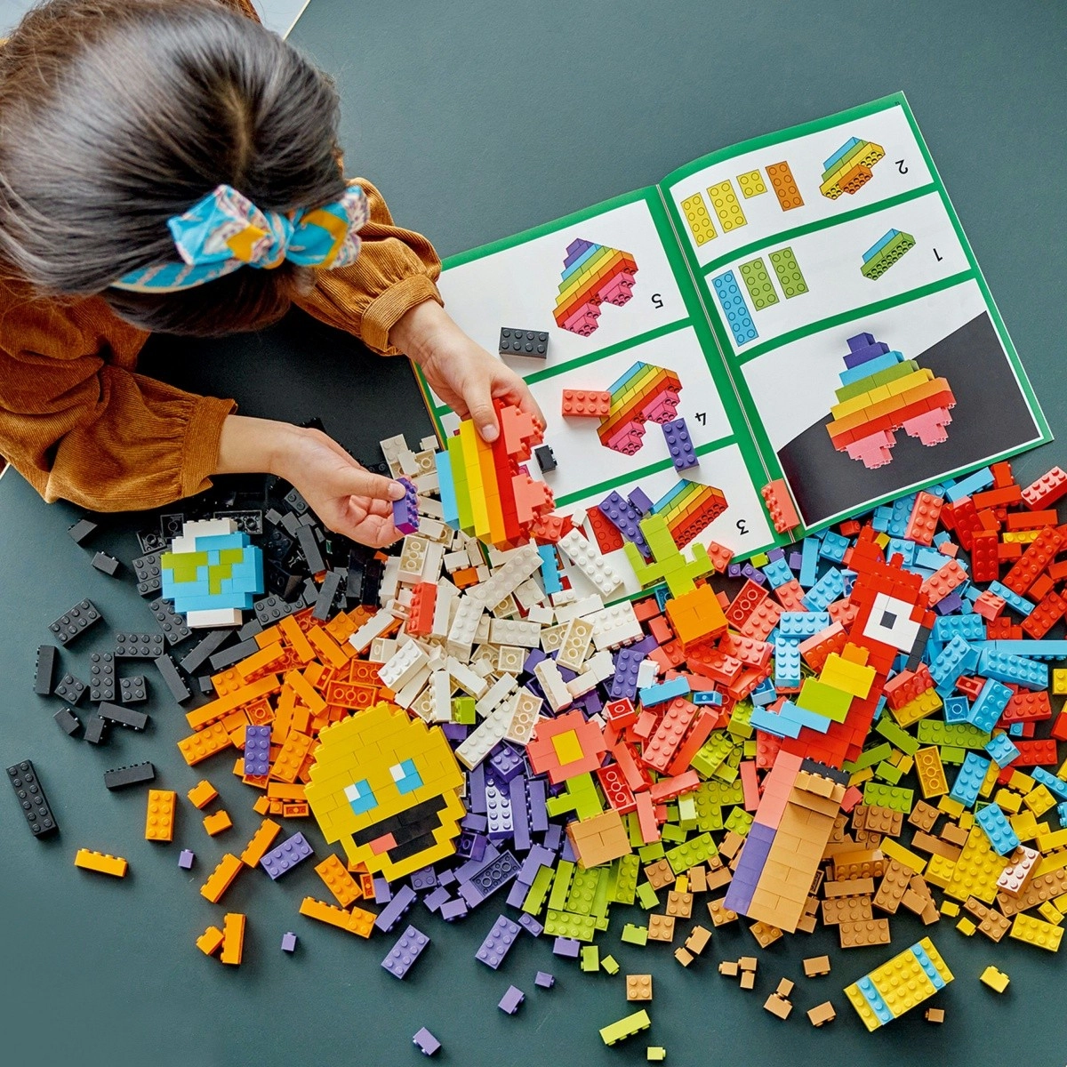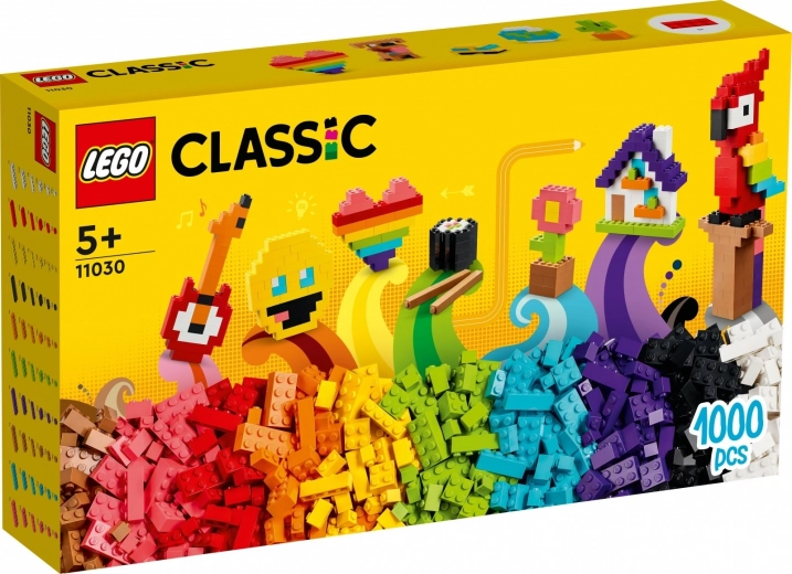 Découvrez des possibilités de construction infinies avec le set LEGO Classic Pile de briques – une boîte colorée avec 1000 pièces en 10 couleurs vives. Les enfants dès 5 ans profiteront d’un jeu créatif libre, de guides imprimés et numériques et de modèles populaires comme une voiture, un globe, une fleur, un perroquet ou un cœur. Idéal pour construire en famille et développer l’imagination ainsi que la motricité fine.