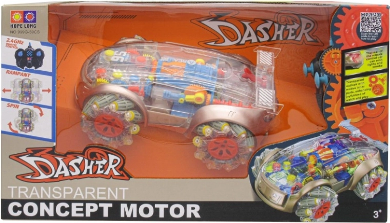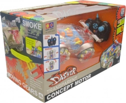 Découvrez une combinaison unique de fun et de technologie. La carrosserie transparente de la voiture RC permet d’observer en temps réel le travail des engrenages colorés et de la mécanique. L’effet fumée se crée facilement : remplissez le réservoir d’eau, appuyez sur le bouton et profitez d’un spectacle visuel pendant la conduite.