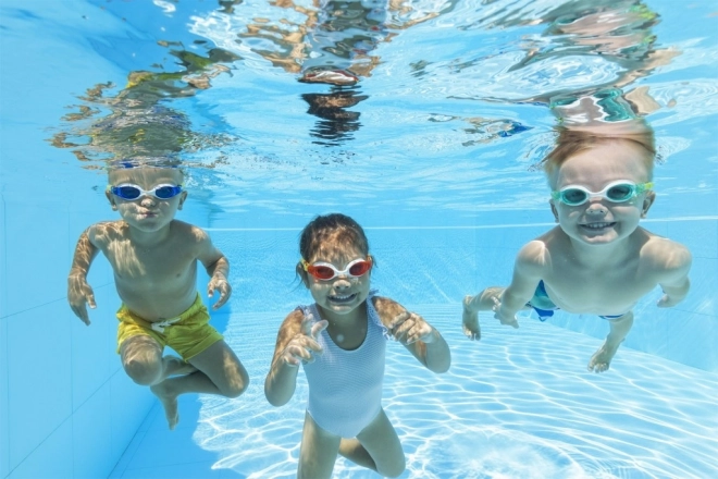 Les magnifiques verres colorés en polycarbonate avec filtre UV offrent non seulement une protection contre les rayons du soleil mais garantissent également une vision claire sous l'eau. Le design est adapté aux enfants à partir de 3 ans et ne contient pas de latex, ce qui augmente la sécurité de port.