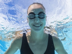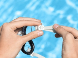 Des verres résistants assurent une vision claire sous l’eau et protègent la vue du soleil dans les piscines extérieures.