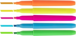 L’emballage comprend cinq couleurs vives (orange, jaune, rose, bleu, vert) avec une pointe large pour un coloriage fluide et intense.