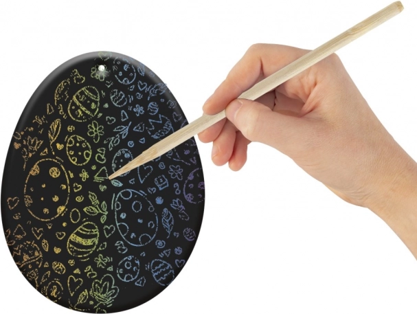 Décorez Pâques avec des créations originales. Après grattage de la couche supérieure, les pendentifs révèlent des couleurs éclatantes, permettant de réaliser de jolis motifs à suspendre aux branches, aux fenêtres ou à utiliser comme ornements de cadeau. Leur conception simple garantit une utilisation facile et un plaisir propre sans désordre.