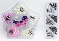 • Contenu du kit : perles de différentes couleurs et formes, 5 pendentifs, autres accessoires, boîte en plastique en forme d’étoile
