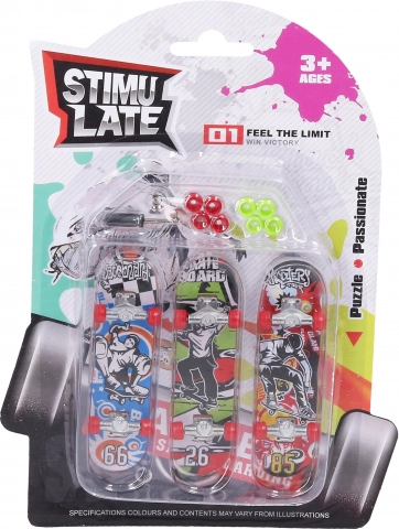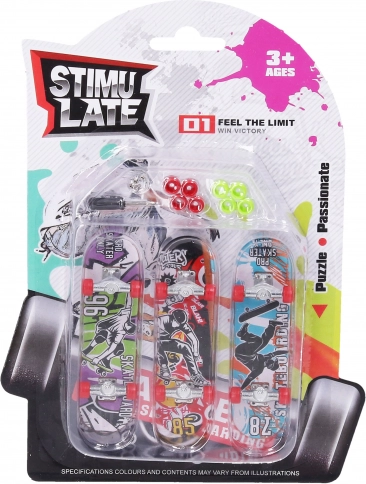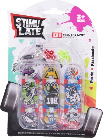 Profitez de beaucoup de plaisir avec un set pratique de fingerboards pour débutants et avancés. L’ensemble comprend 3 fingerboards complets, des roues colorées, des vis de rechange et un tournevis pour des réglages simples. Taille idéale de 9,5 cm pour les tricks à la maison comme en déplacement.