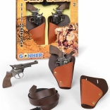 Ce set de revolvers de cowboy en métal apporte aux enfants comme aux adultes l’atmosphère classique du Far West. Deux pièces en métal de qualité avec un étui commun, faciles à porter et agréables en main. Grâce à l’effet sonore, ils paraissent réalistes tout en étant sécurisés – sans tir et sans munitions.
