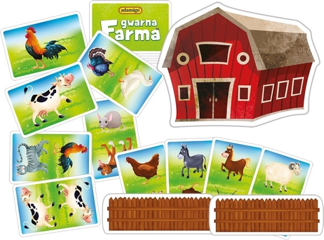 Découvrez le jeu de cartes Gwarna Farma de ADAMIGO, rapide et joyeux, pour toute la famille. Les joueurs tentent de trouver le plus vite possible trois cartes identiques d’animaux, de les ajouter à leur ferme tout en imitant les sons des animaux. Le jeu développe les réflexes rapides, la motricité fine et l’écoute, et il est idéal pour les enfants dès 3 ans.