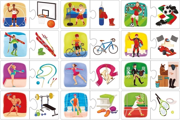 Ce que les enfants y gagnent : un divertissement associé à la découverte du sport, l’enrichissement du vocabulaire et le renforcement de l’attention aux détails grâce à l’appariement d’images.