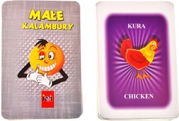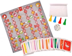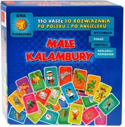 Le set contient tout ce qui est nécessaire pour jouer immédiatement: plateau de jeu, 4 figurines, un dé, 110 cartes avec des mots en polonais et en anglais, un carnet de notes et un guide.