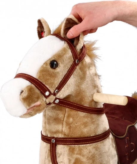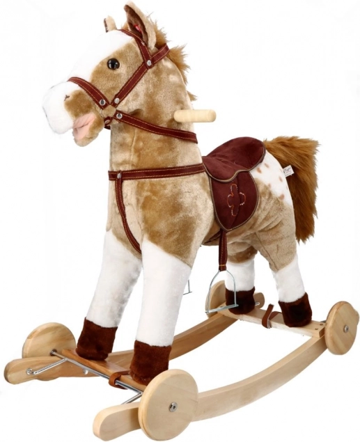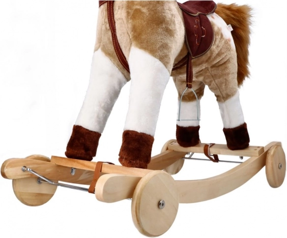 Le cheval à bascule Mustang avec roulettes offre une expérience de conduite réaliste pour les petits aventuriers. Grâce à une combinaison de bois et de textile, le cheval est à la fois solide et doux.