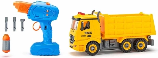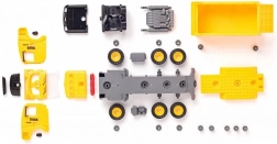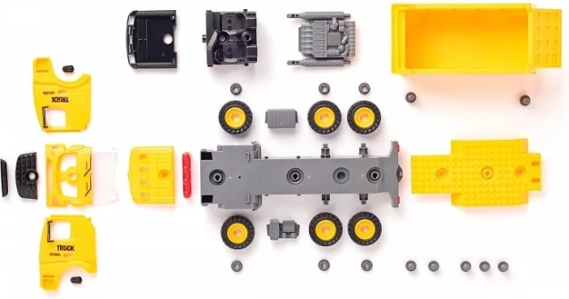 Le set comprend des pièces en plastique du véhicule et des roues pour un montage autonome. Les enfants assemblent le véhicule et peuvent aussitôt partir sur le chantier.