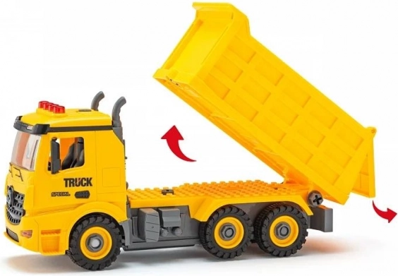 Cette benne basculante interactive combine le plaisir du montage avec la conduite dynamique. Les enfants assemblent facilement le véhicule à partir de pièces en plastique, découvrent les bases de la construction, puis partent sur le chantier avec des roues fonctionnelles et une benne résistante. Le jeu stimule la pensée logique, la patience et la coordination œil–main.