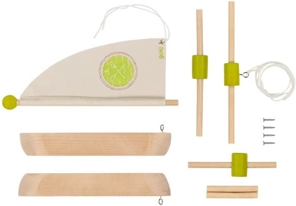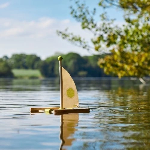 La coque en bois légère et la voile simple stimulent le jeu imaginatif et des aventures aquatiques en toute sécurité.
