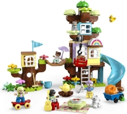 Adorable set LEGO DUPLO 3-en-1 Maison dans l’arbre offrant des heures de jeu créatif aux enfants dès 3 ans. Grâce à la possibilité de construire 3 modèles en 1, à de nombreux accessoires et à 8 figurines, les petits bâtisseurs développent leur motricité fine, la coopération et les compétences sociales – avec un long toboggan, un pont suspendu et un jardin pour des histoires sans fin.