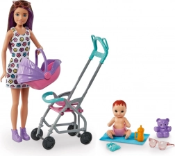 Découvrez la magie des jeux de soins avec le set BARBIE Skipper Baby-sitter. Les enfants peuvent promener le bébé dans une poussette qui se balance en roulant et, grâce au porte-bébé amovible, le transporter facilement. La poupée stylée porte une robe d’été et des chaussures, le bébé et les accessoires colorés invitent à des histoires sans fin.