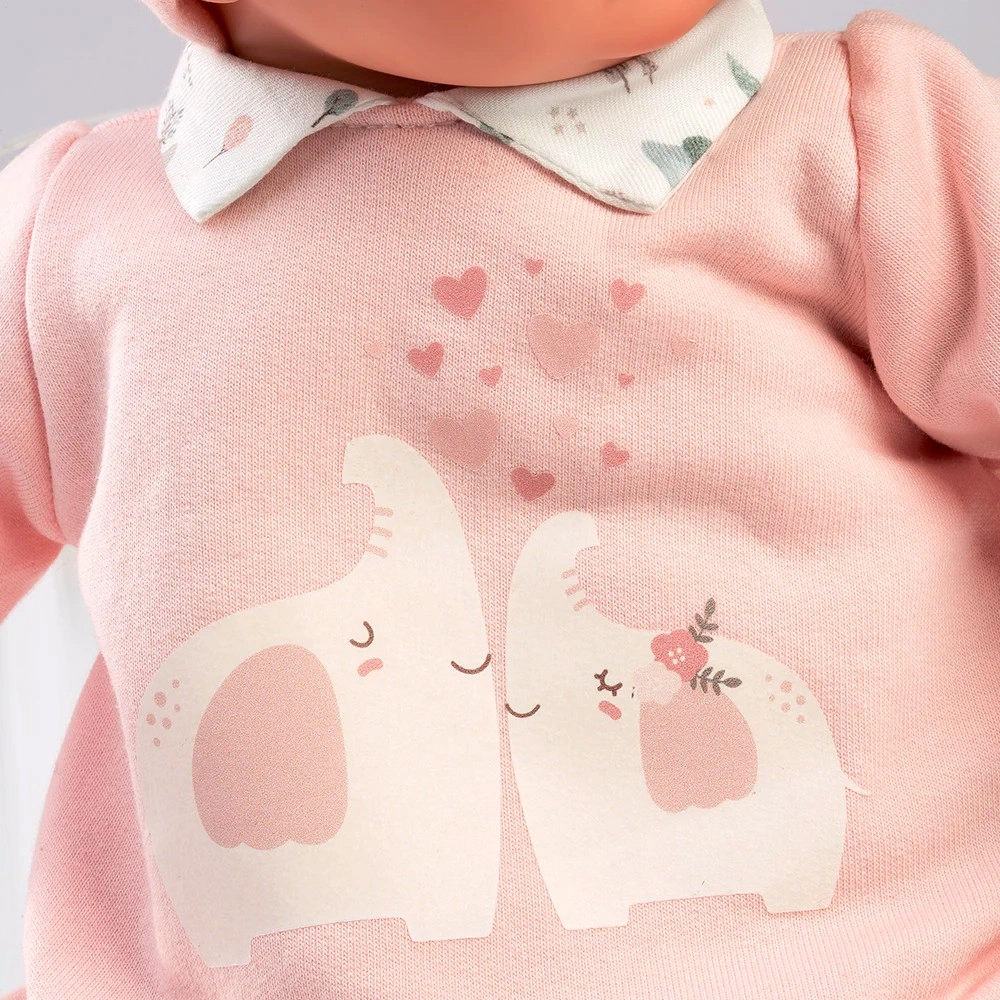 Le mignon bébé Joelle de la marque Llorens séduit par sa fabrication de qualité et ses détails réalistes. Il possède un ventre souple pour des câlins agréables, des mains, pieds et tête en vinyle avec un ombrage délicat, des cils et des yeux pétillants. Les vêtements sont confectionnés en coton biologique, laine et matériaux recyclés. Un cadeau idéal pour les enfants avec des fonctions éducatives et ludiques.