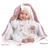 Cette poupée réaliste Llorens New Born est conçue pour un jeu d’imitation authentique. Son corps en tissu est doux au toucher, et ses membres en plastique articulés permettent des positions naturelles et la position assise. En appuyant sur la poitrine, la poupée prononce « maman », « papa » et émet un pleur réaliste, favorisant un jeu empathique.