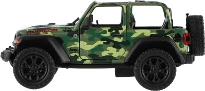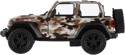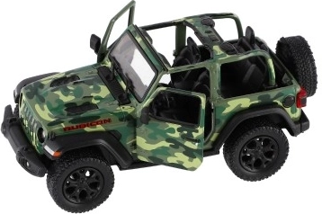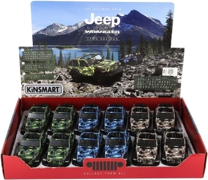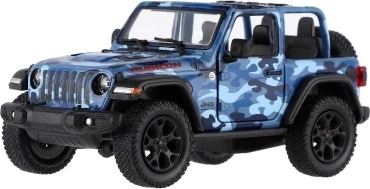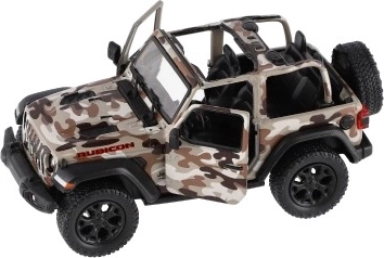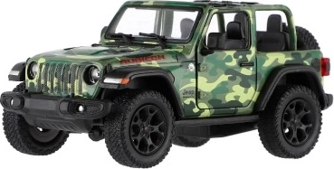 Modèle en métal de la voiture Jeep Wrangler, édition Camo avec des détails réalistes, portes ouvrantes et mécanisme à rétrofriction, disponible en trois couleurs. Idéal pour les petits aventuriers et les collectionneurs.