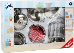 Le petit ensemble de vaisselle en métal de Small Foot est l'accessoire idéal pour une cuisine pour enfants. Cet ensemble riche comporte des éléments individuels comme des poêles, casseroles et autres ustensiles qui permettent aux enfants de jouer aux chefs.