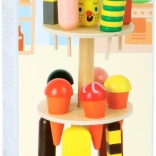 Le set propose 15 “saveurs” différentes avec des couleurs et décors attrayants que les enfants adorent combiner et “vendre”. La construction en bois stable assure une présentation sécurisée de toutes les pièces et une organisation claire.