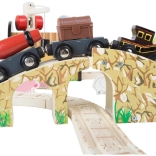 Le set est fabriqué à partir de matériaux naturels de haute qualité et issus de sources responsables, complétés par des éléments en plastique résistants pour une longue durée de vie. Toutes les pièces sont conçues avec un accent sur la sécurité et le développement des compétences des enfants – elles stimulent l’imagination, l’adresse et la coordination. L’emballage comprend tous les éléments visibles sur l’illustration et l’ensemble est compatible avec la plupart des circuits de trains en bois classiques.