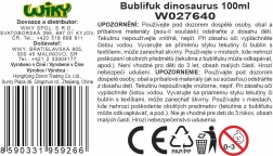 Un bulleur amusant en forme de dinosaure ravira petits et grands. Grâce à un volume de 100 ml et une longueur de 35 cm, vous créerez de nombreuses bulles magnifiques. Disponible en 4 variantes de couleurs – bleu, jaune, vert et rose.