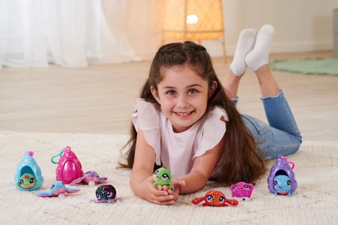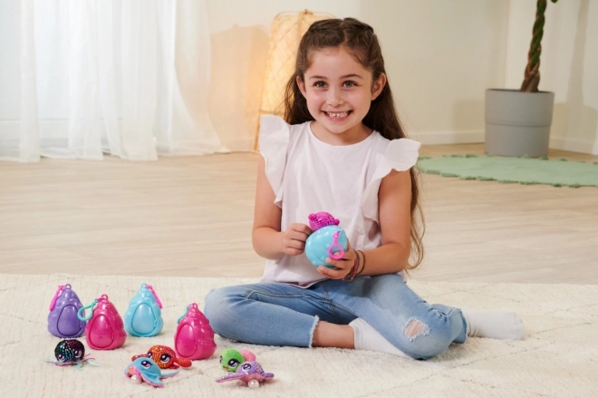 Les Pearly Pods mettent en scène le monde sous-marin de nos petits amis. De mignonnes petites créatures marines vivent dans leurs coquilles et peuvent regarder dehors grâce à une petite porte coulissante. Vous pouvez emporter votre ami marin dans sa coquille grâce à un porte-clés pratique. De charmants animaux sous-marins dans une finition pailletée, et certains avec une perle unique !