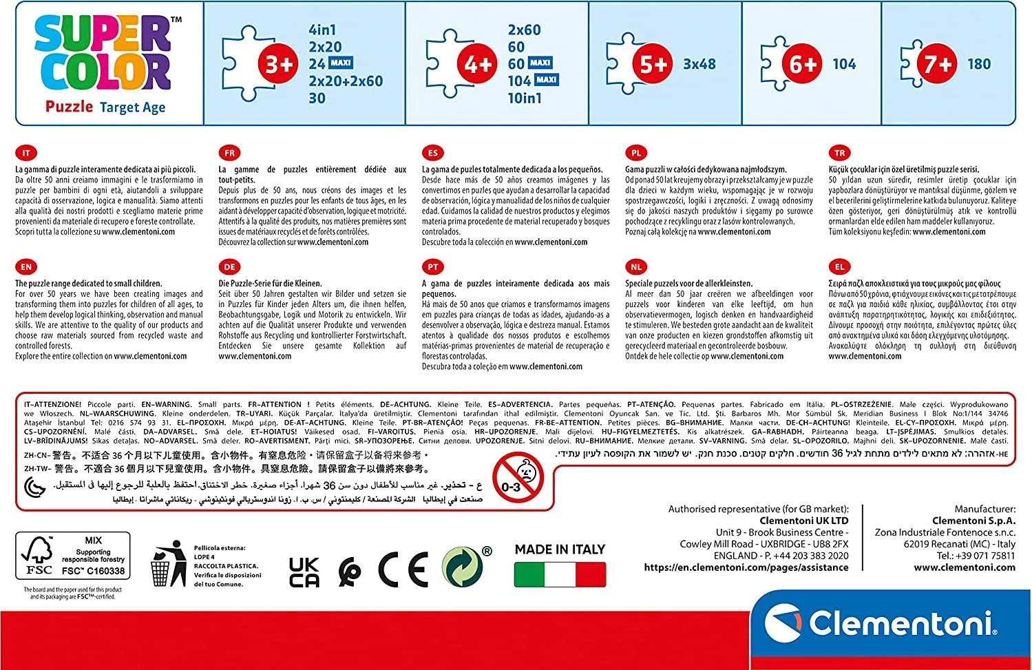 Une fois terminées, vous pouvez démonter les images pour les reconstituer à volonté, ou les coller sur un support afin de créer une décoration originale pour la chambre d’enfant. La marque Clementoni compte parmi les principaux fabricants de puzzles au monde et est réputée pour l’ajustement précis des pièces et la grande qualité des matériaux.
