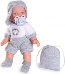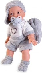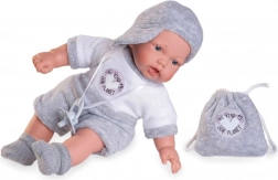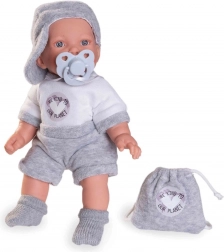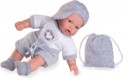 Cette poupée parlante est fabriquée à la main conformément à des normes écologiques élevées. En appuyant sur le ventre, la poupée dit « maman », « papa » et émet un son réaliste de bébé riant.