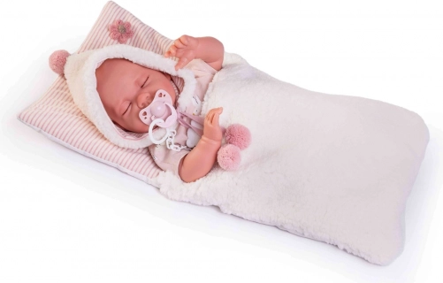 Poupée réaliste endormie, faite à la main avec un corps en tissu doux et une surface spéciale en vinyle souple. Un choix parfait pour les enfants à partir de 3 ans.