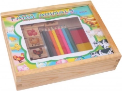 Ce set comprend une large gamme de tampons représentant différents habitants animaux de la ferme. Les enfants peuvent colorier chaque motif avec les 8 crayons inclus, ce qui permet des combinaisons infinies de designs colorés. La boîte en bois offre une solution de rangement idéale pour tout ce dont les enfants ont besoin pour créer, ce qui rend aussi ce set idéal pour voyager.