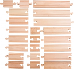 La qualité de fabrication des rails en bois assure un jeu sécurisé et un montage facile de diverses pistes ferroviaires.