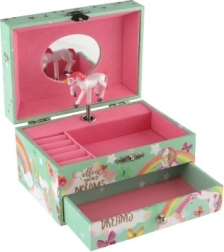 Miroir, compartiments, figurine de licorne tournante, tiroir inférieur
