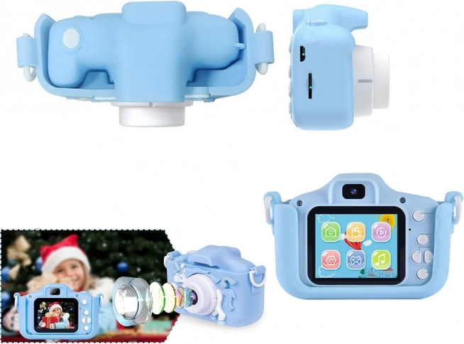 Un appareil photo compact et léger est équipé d'un écran de 2 pouces et offre des fonctions telles que le zoom 4x et des filtres colorés pour des photos uniques. Grâce à sa protection en silicone, il est protégé contre les chutes et les chocs.