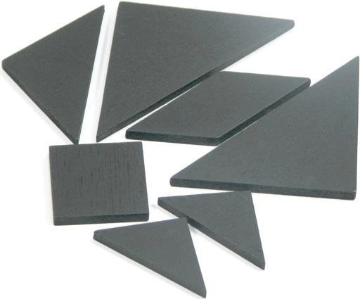 Sept pièces en bois résistantes de couleur noire créent des compositions marquées et sont agréables à manipuler.