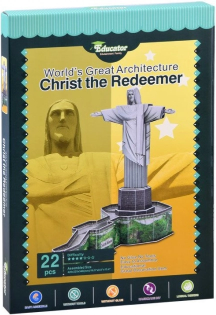 Découvrez le plaisir de créer avec un puzzle 3D qui reproduit fidèlement la célèbre Statue du Christ Rédempteur dominant la ville brésilienne de Rio de Janeiro. Grâce aux pièces découpées avec précision en mousse de 3 mm recouverte de papier imprimé laminé, vous obtiendrez un modèle robuste et esthétique qui fera bel effet dans n’importe quelle pièce.