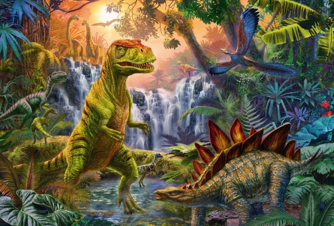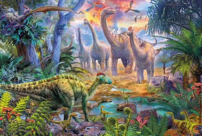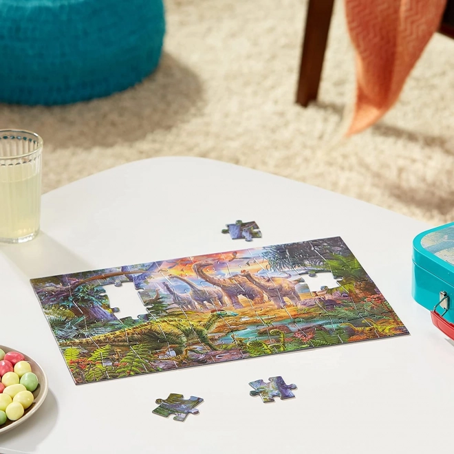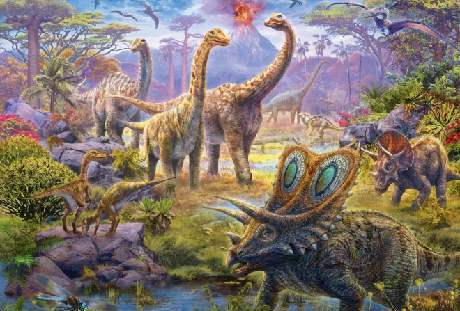 Chaque puzzle propose une scène différente du monde préhistorique, divers types de dinosaures sont représentés dans des illustrations détaillées.