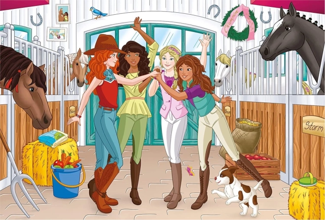 Ce coffret de puzzles SCHMIDT propose quatre scènes magnifiquement illustrées avec des chevaux et cavalières de l'univers SCHLEICH HORSE CLUB. Grâce aux niveaux de difficulté variés (60 et 100 pièces), les enfants peuvent progresser pas à pas et profiter d'heures de divertissement créatif.