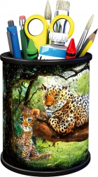 Un organiseur pratique en puzzle 3D au motif léopards de RAVENSBURGER transforme le désordre sur votre bureau en un système ordonné. Les pièces en plastique rigide s’emboîtent parfaitement sans colle et, une fois assemblées, forment un porte-stylos stable pour crayons, pinceaux ou petits objets. À assembler selon l’image ou le numérotage des pièces – idéal comme cadeau et décoration originale.